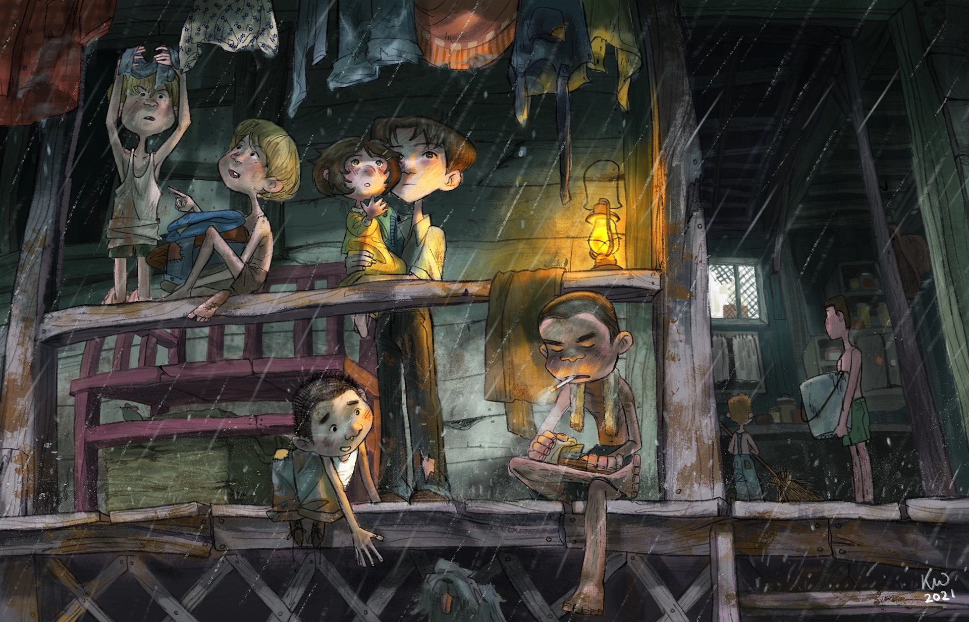 Retelling of the Grimm's Fairy Tale The Seven Ravens.